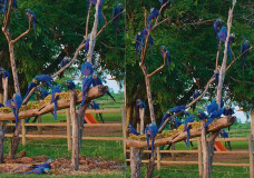 Um fotógrafo registrou uma cena pouco comum no Pantanal de Mato Grosso do Sul: mais de 30 araras-azuis reunida...