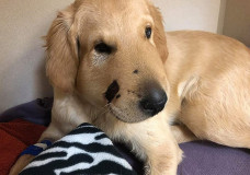 Este filhote de golden retriever levou uma picada de uma cobra cascavel para salvar sua dona. O ato heróico do...